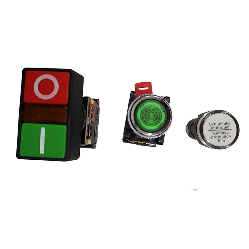 Pushbuttons le lampaichean comharrachaidh: Tha lampaichean comharra air an aonachadh anns na brussbuttons gus sealltainn inbhe obrachaidh an inneal (thuirt e.e. ruith,.