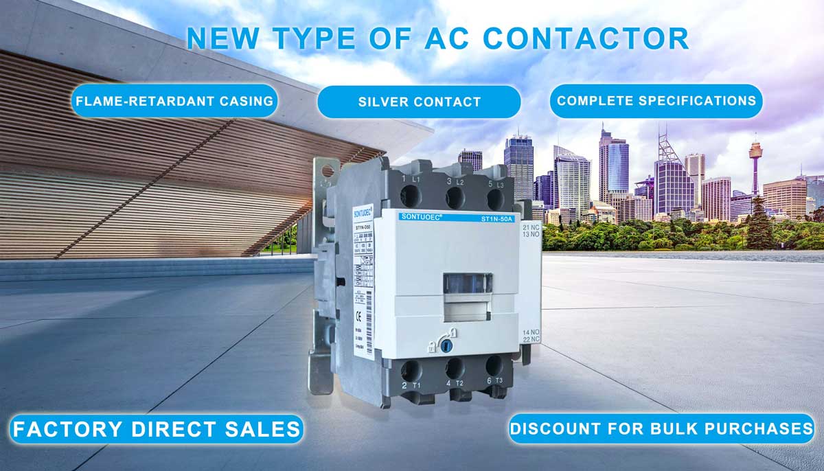 Tha SONTUOEC mar aon de sholaraichean / luchd-saothrachaidh Sìneach a tha gu sònraichte a’ cinneasachadh grunn innealan dealain beaga Tha ST1N Series AC Contactor freagarrach airson a bhith a’ cleachdadh anns na cuairtean an bholtadh ìre suas gu 660V AC 50Hz no 60Hz, sruth ìre suas gu 95A, airson dèanamh & briseadh, gu tric a’ tòiseachadh & a’ cumail smachd air an motair AC. Còmhla ris a’ bhloc conaltraidh taiceil, dàil timer & inneal ceangail inneal msaa, bidh e na neach-conaltraidh dàil, neach-conaltraidh meacanaigeach, inneal tòiseachaidh star-delta. Leis an t-sealaidheachd teirmeach, tha e air a chur còmhla a-steach don inneal tòiseachaidh electromagnetic. Tha an Contactor air a thoirt a-mach a rèir IEC 60947-1.