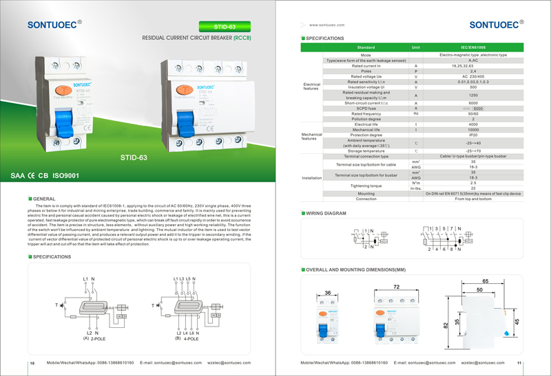 Tha Soanuoec mar aon de na solaraichean / luchd-saothrachaidh Sìneach a tha a 'dèanamh cinnteach gu bheil diofar innealan còmhnaidh beaga RCCB 230v 63A a' dealas le inbhean IEC61008.